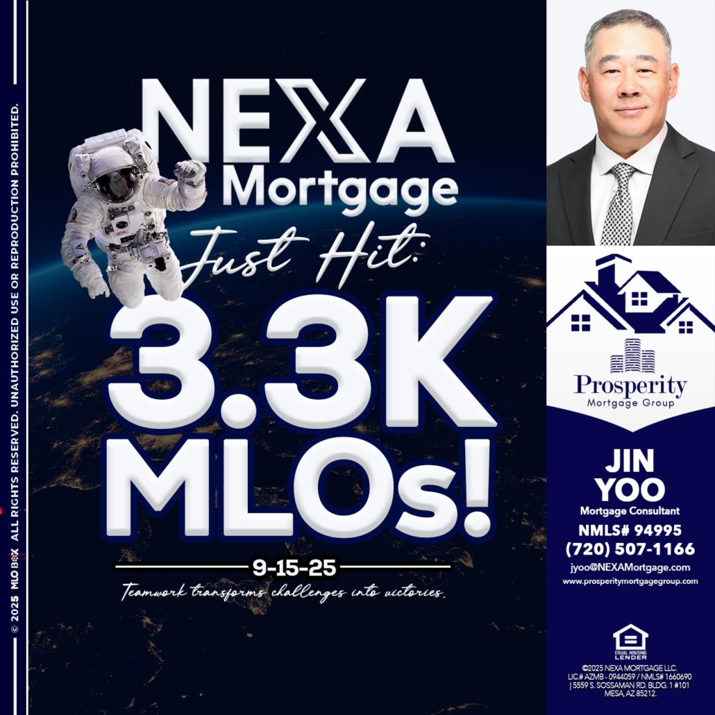 3.3K - Jin Yoo -Mortgage ConsultantHi, my name is Jin Yoo. I’m a Loan Officer with NEXA Mortgage LLC., offering personalized mortgage solutions, fast customized quotes, great rates and service with integrity.