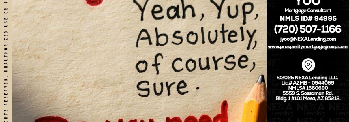 answer without - Jin Yoo -Mortgage ConsultantHi, my name is Jin Yoo. I’m a Loan Officer with NEXA Lending LLC., offering personalized mortgage solutions, fast customized quotes, great rates and service with integrity.