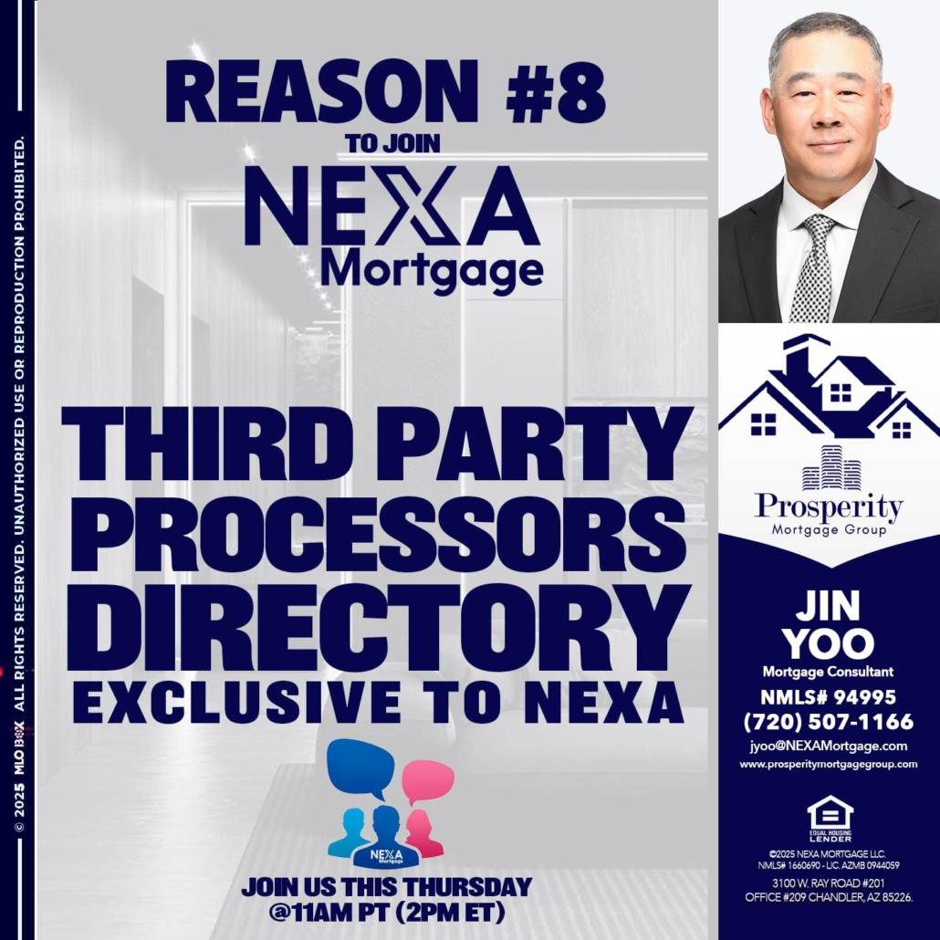 Hi, my name is Jin Yoo. I’m a Loan Officer with NEXA Mortgage LLC., offering personalized mortgage solutions, fast customized quotes, great rates and service with integrity.