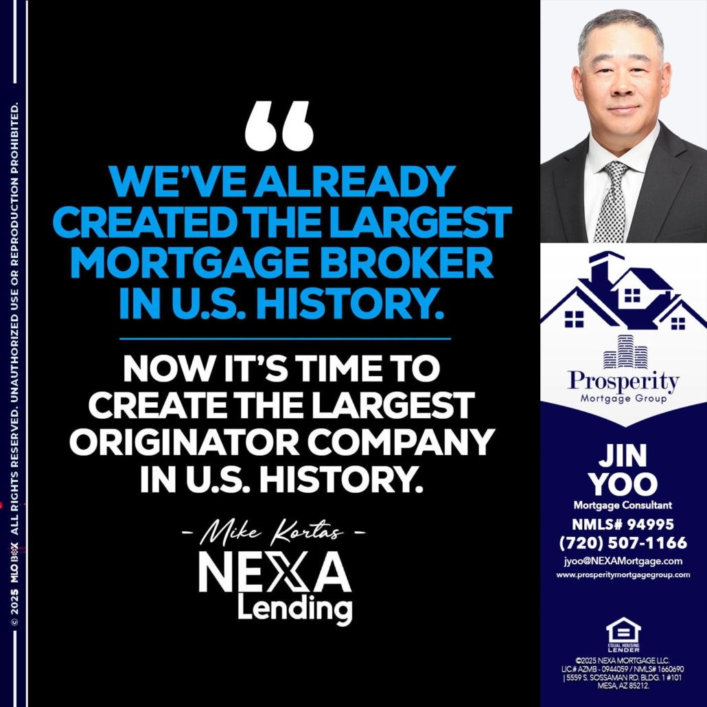 Hi, my name is Jin Yoo. I’m a Loan Officer with NEXA Mortgage LLC., offering personalized mortgage solutions, fast customized quotes, great rates and service with integrity.